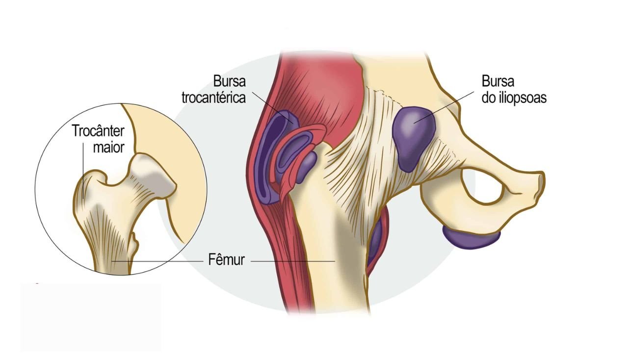 Bursite Trocantérica A bursite trocantérica é uma das causas mais frequentes de dor na região lateral do quadril, afetando principalmente mulheres entre 40 e 60